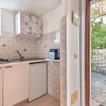 Een ingerichte kitchenette is volledig uitgerust voor self-catering doeleinden met een oven en keukengerei.